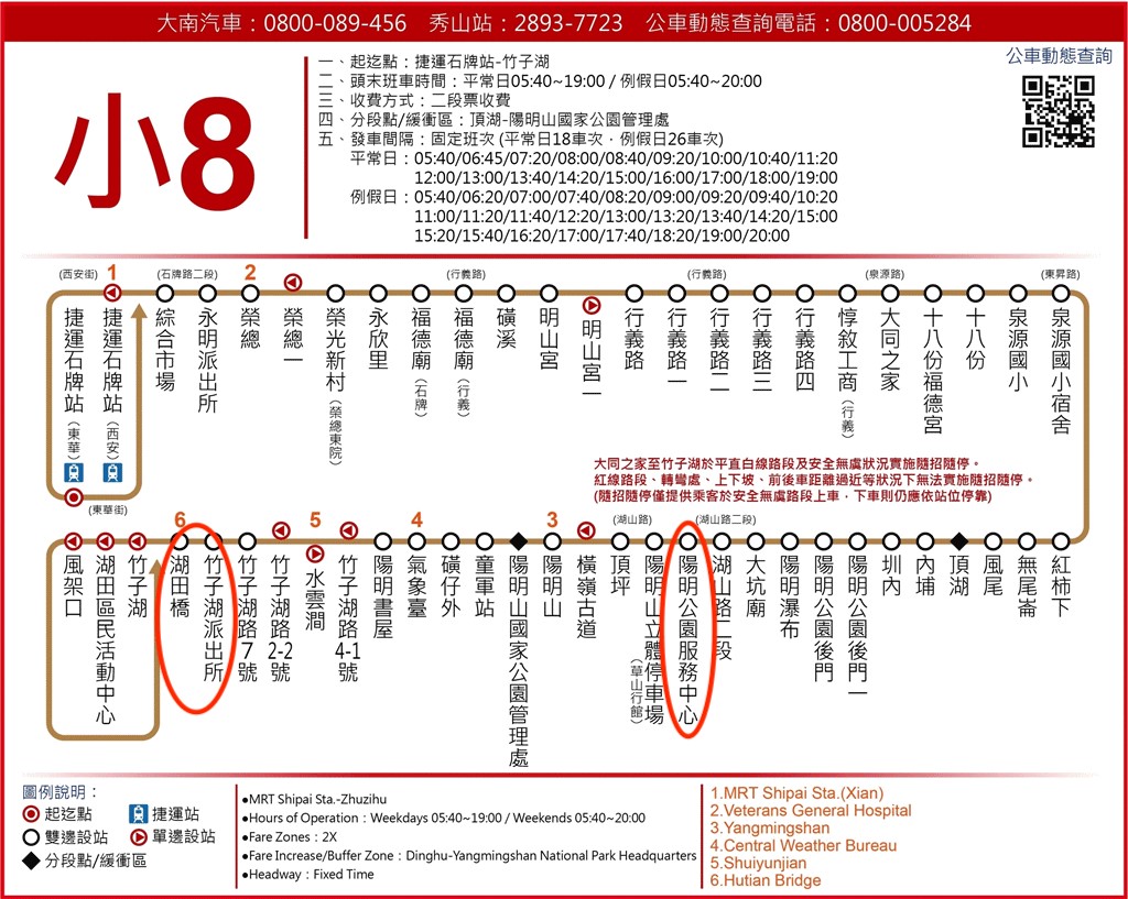 108路線資訊 陽明山遊園公車 行經陽明山總站 擎天崗 小油坑
